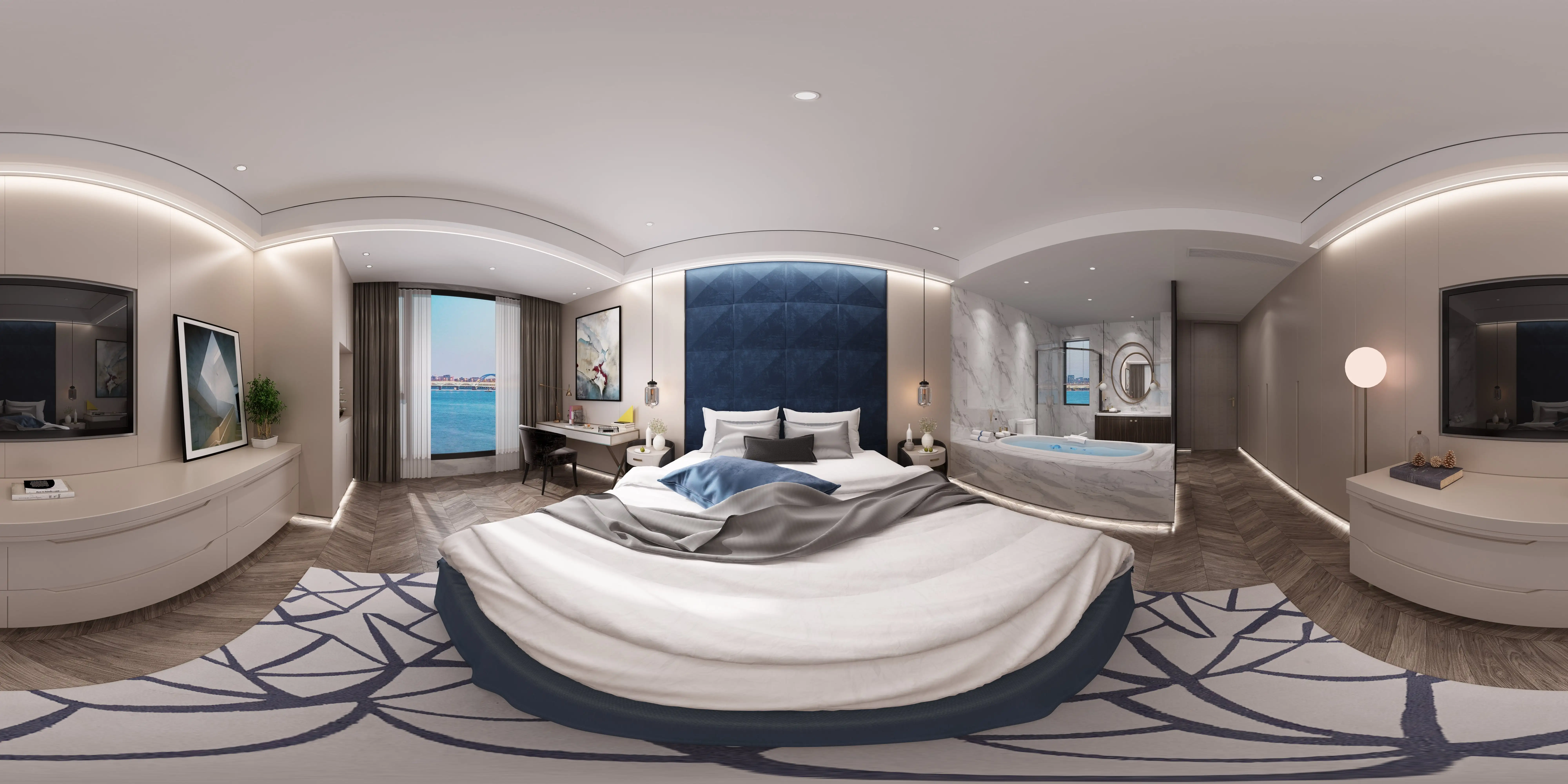 Earlier build showcasing lobby, suites, and dining areas with basic hotspots and navigation.
